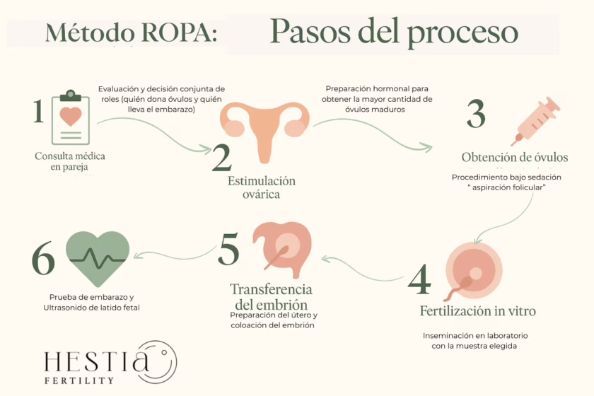 Uno de los métodos más significativos es el Método ROPA (Recepción de Óvulos de la Pareja), una técnica de reproducción asistida que permite que dos mujeres participen activamente en la creación de su hijo: una aporta los óvulos y la otra lleva el embarazo. Es una experiencia única que simboliza el compromiso mutuo, la construcción de un proyecto de vida común y el amor como base para la crianza.